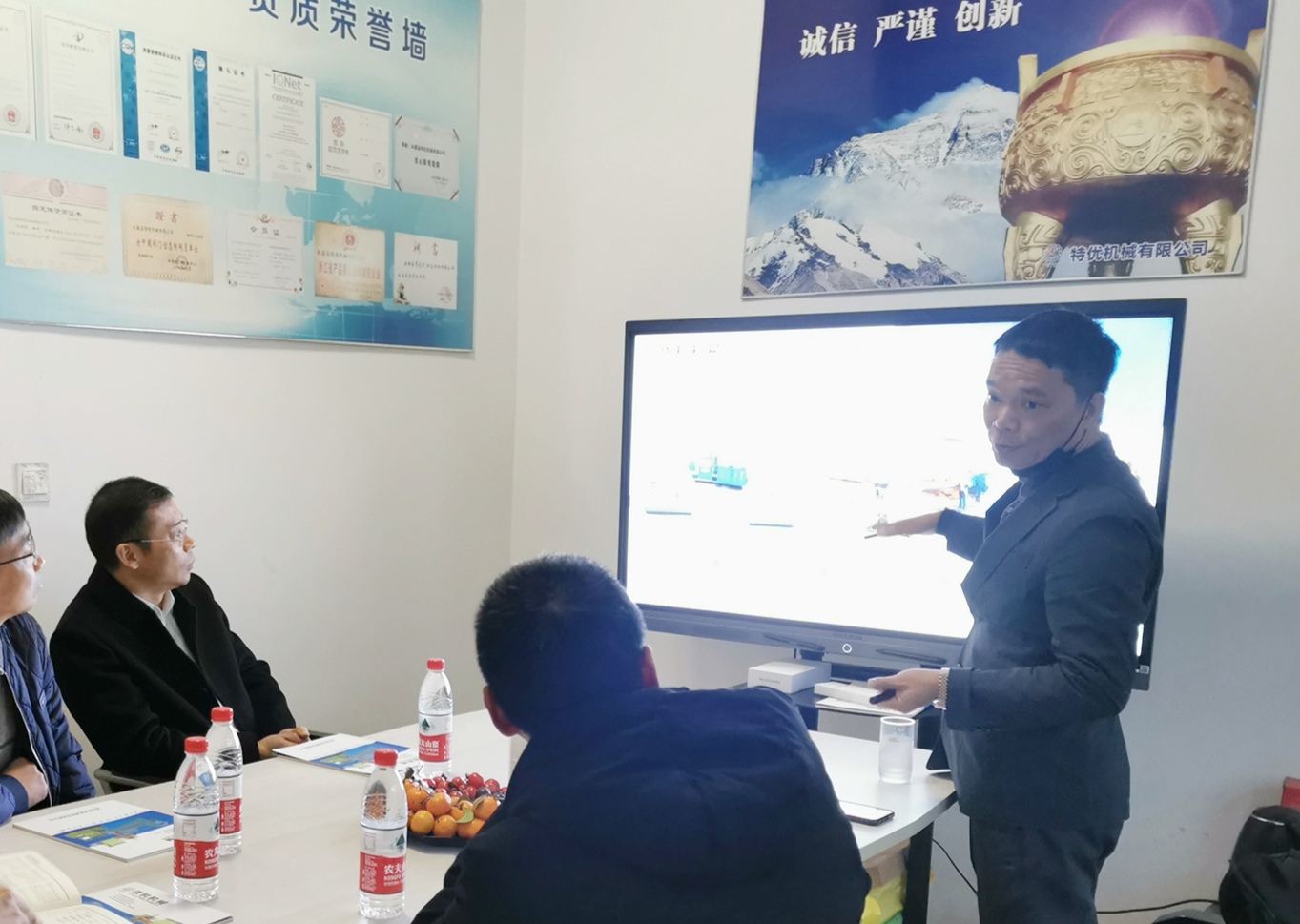 元旦剛過,永嘉縣政協(xié)副主席黃天集等領(lǐng)導走訪我公司,企業(yè)負責人李珍武接待了來訪的黃主席等領(lǐng)導一行。走訪過程中,黃主席一行詳細地了解了浙江優(yōu)機機械科技有限公司的產(chǎn)品特點和目標客戶定位及雙節(jié)假期臨近工人返鄉(xiāng)復工防疫部署計劃,聽取了李總關(guān)于對來年公司市場布局、新產(chǎn)品研發(fā)、目標客戶推廣等情況的報告,還詳細詢問了公司在過去一年生產(chǎn)經(jīng)營中遇到的難題和急需協(xié)調(diào)解決的事項,并詳細了解2020年新產(chǎn)品銷售占比提升幅度,及疫情影響出口占比幅度。李總在做工作匯報中提到:在當前國外疫情復雜多變的情況下,公司側(cè)重于挖掘國內(nèi)大型油氣、液化氣、投資項目和閥門精密加工設備研發(fā)投入,在提高自身新產(chǎn)品研發(fā)投入和質(zhì)量標準的同時,公司還在籌備大項目準入所需的資質(zhì)條件,做好內(nèi)外雙循環(huán)新基建投資帶來的有效內(nèi)需,如經(jīng)過4年的摸索研發(fā),去年新投產(chǎn)的大型油氣管道絕緣接頭壓力封裝機填補了我國中俄管線天然氣管道大型絕緣接頭絕緣密封整機封裝專用設備空白。在產(chǎn)品技術(shù)升級方面,公司在原有的產(chǎn)品基礎(chǔ)上開發(fā)了新型旋塞閥柔性點磨研磨機,解決了旋塞閥密封面研磨精度差、報廢率高的難題。