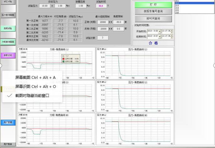 4. 該測試裝置應能顯控閥門扭矩測試過程中任一開度位置的扭矩值,打印表格上應有最大測試扭矩力,并能輸出打?。ㄩy門開度位置與扭矩值對應曲線圖)。